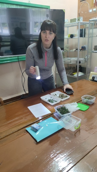 Учасники гуртка кафедри овочівництва удосконалювали навички макроскопічного аналізу та органолептичної оцінки лікарської рослинної сировини на прикладі лікарських рослин родини Губоцвіті. Працювали із висушеною сировиною м’яти перцевої і меліси лимонної.