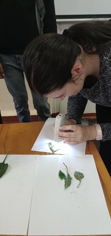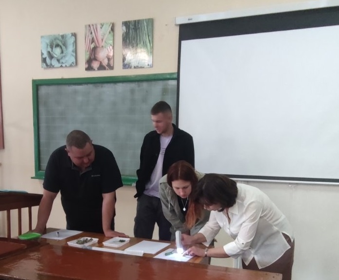 На спільному засіданні гуртків кафедри овочівництва та захисту і карантину рослин студенти відпрацьовували методику ідентифікації та обліку чисельності шкідників овочевих рослин. Вчасне виявлення шкідників у теплиці – це важлива умова ефективного захисту овочевих культур, оскільки дозволяє запобігти серйозним втратам урожаю та знизити витрати на пестициди. Навіть незначне пошкодження попелицею, трипсами, білокрилкою, кліщами знижує товарний вигляд овочів. У закритому ґрунті шкідники розмножуються особливо швидко завдяки сприятливим умовам (висока температура, вологість, відсутність природних ворогів). Навіть незначне запізнення з їх виявленням призводить до епідемії. Своєчасний моніторинг дає змогу застосовувати пестициди або біопрепарати лише за потреби, з урахуванням економічного порогу шкідливості (ЕПШ).